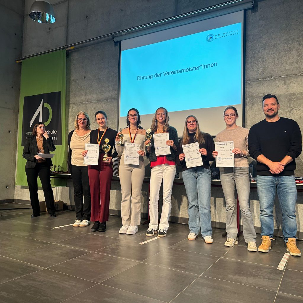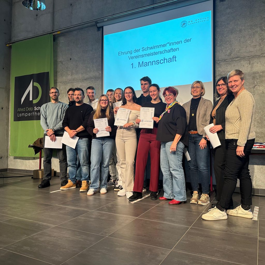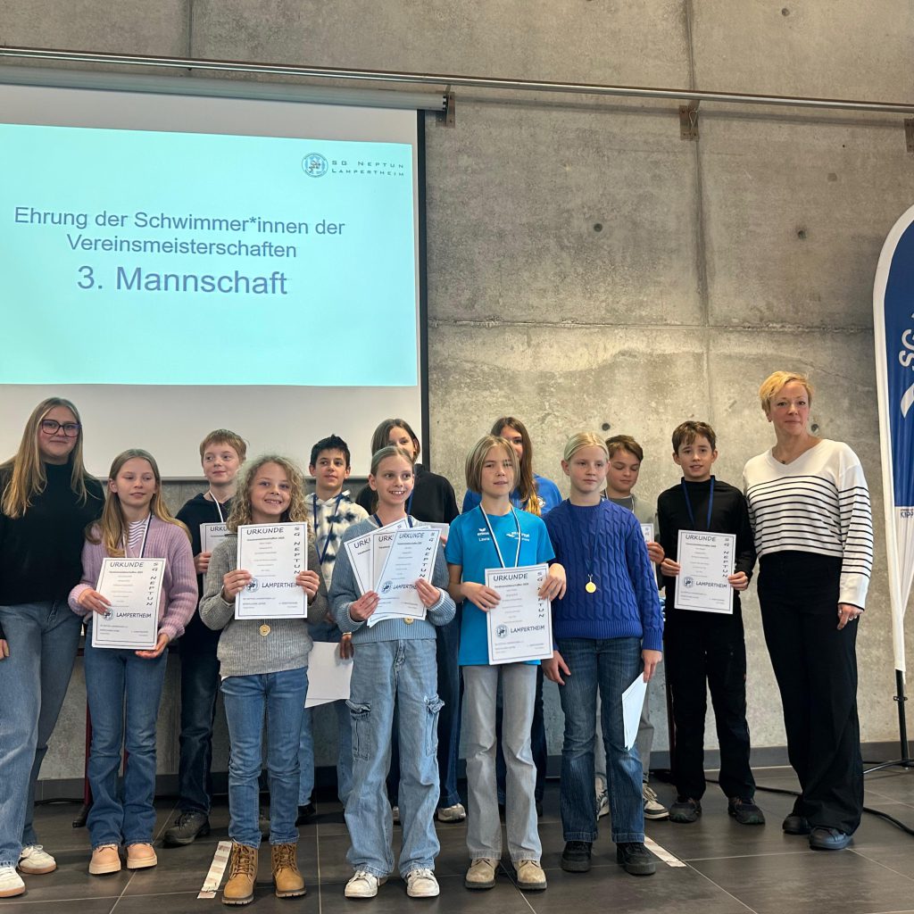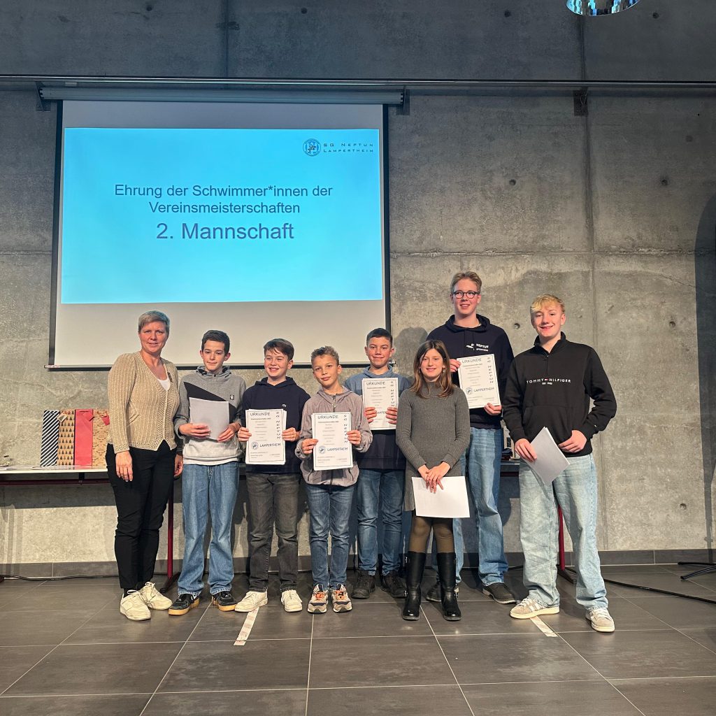 Neben den Jubilaren wurden auch die Ergebnisse der Vereinsmeisterschaften geehrt, so freuten sich alle Schwimmerinnen über Urkunden in den Jahrgangswertungen. Auch wurden die drei großen Wertungen, die Nachwuchs-, Masters- und Vereinsmeisterwertung geehrt. Zum Starten in der Nachwuchswertung mussten die Schwimmerinnen (Jahrgang 2013 und jünger) auf den 100m Lagen und zwei 50m Strecken Punkte sammeln und wurden in der Summer dieser verglichen. Bei den Mädchen konnte Helena Platz (Jg. 2014) die Wertung vor Lucia Jacobi (Jg. 2013) auf Platz zwei und Magdalena Molitor (Jg. 2013) auf Platz drei für sich entscheiden. Bei den Jungen siegte Sebastian Süssner (Jg. 2013) vor Marc Wruck (Jg. 2015) auf Platz zwei und Julian Krizak (Jg. 2013) auf Platz drei. In der Masterswertung dürfen Schwimmerinnen ab der Altersklasse 20 (Jg. 2005 und älter) mit den gleiche. Vorraussetzungen wie in der Nachwuchswertung starten. Bei den Damen gewann Doreen Steinborn (Jg. 1977) vor Svenja Sabo (Jg. 1971) auf Platz zwei und Kira Scholz (Jg. 2002) auf Platz drei. Henrik Nieter (Jg. 1982) entschied das Rennen der Herren für sich vor Paul Przyklek (Jg. 1984) auf Platz zwei und Benjamin Medert (Jg. 1997) auf Platz drei. In der Vereinsmeisterwertung starteten die Schwimmerinnen auf der doppelten Distanz. Maria Mörstedt und Tim Uebach (beide Jg. 2004) konnten die jeweilige Wertung für sich entscheiden. Auf Platz zwei schwammen Hannah Mörstedt (Jg. 2004) und Nicolas Greulich (Jg. 2009) und Platz drei konnten Lia Lorenz (Jg. 2010) und Leonard Wruck (Jg. 2012) erreichen. Wir gratulieren allen Sportler*innen zu diesen Ergebnissen.